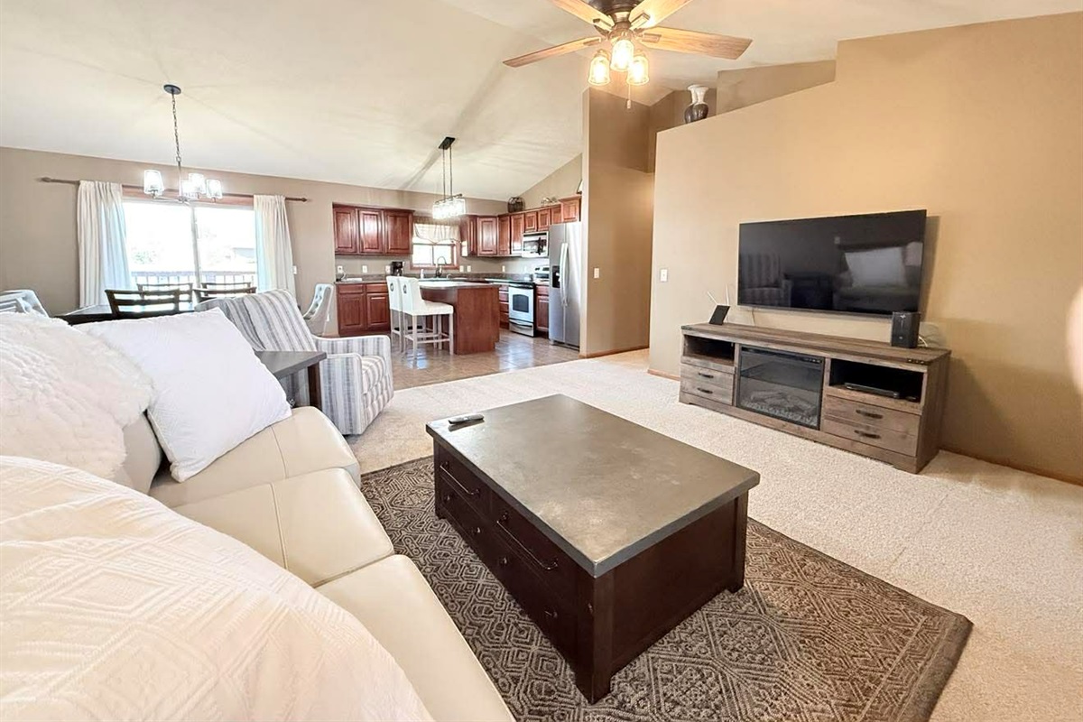 Town home with great location on west side of Sioux Falls with easy access within minutes to hospitals and clinics. You will find that Sioux Falls is an easy drive anywhere in the city - especially if you have lived in a larger city. Great shopping and restaurants are nearby as well as hike and bike trails and fitness facilities. Enjoy privacy and quiet in this beautiful town home just newly furnished in 2018. 2 bedrooms, 1 bath with open concept kitchen/dining and living room. All utilities including basic cable, internet with wi-fi are included. Netflix is also available on the Smart TV for your use. Relax on the back balcony after a hard day of work, or de-stress with a workout an the nearby Sanford Wellness Center.