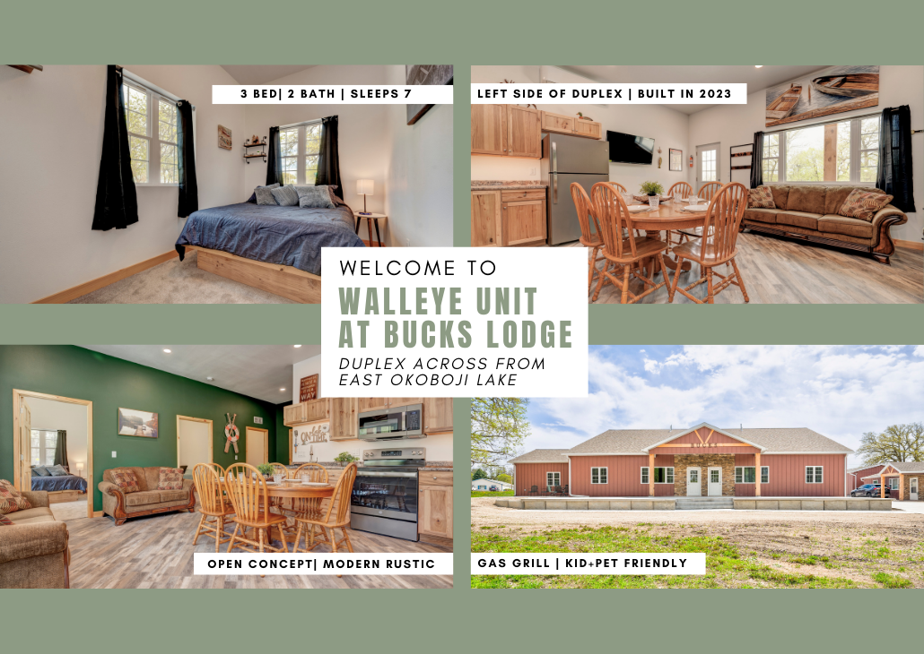 3 Bedrooms • 2 Bathrooms 2 Baths • Sleeps 1-7Welcome to Bucks Lodge – Walleye Unit, your serene Iowa Great Lakes getaway. This charming 3-bedroom, 2-bath retreat offers stunning lake views, modern comforts, and a fully stocked setup so you can simply arrive and relax.